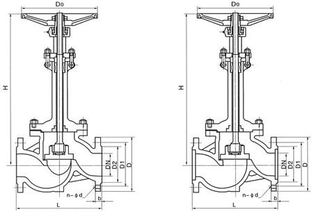五、国标低温截止阀(节流)阀 PNl.6MPa一4.0MPa 规格主要尺寸: